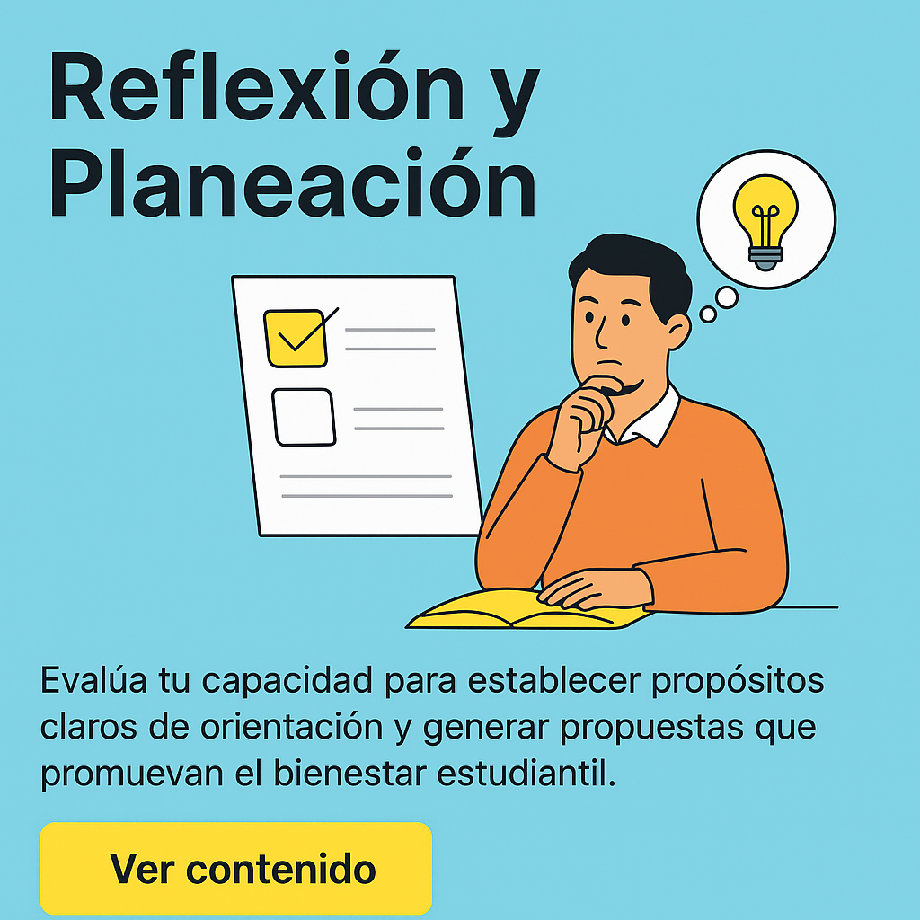 Este criterio evalúa la capacidad del docente orientador para planear su labor con propósito, sentido pedagógico y enfoque humano, diseñando intervenciones pertinentes que articulen lo académico, lo emocional y lo social.